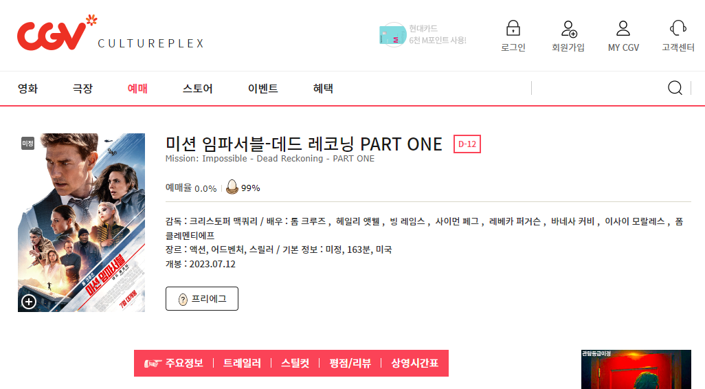 CGV에서 7월12일 첫 상영 됩니다. 링크를 누르시고 예매 준비해 해 주세요.