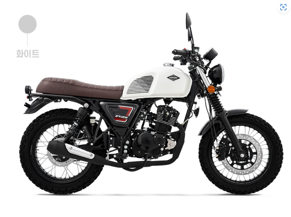 베네리 키웨이 SR125는 글로시 화이트(Glossy White), 글로시 블랙(Glossy Black) 및 글로시 레드(Glossy Red)의 세 가지 색상으로 제공됩니다. 모든 색상 옵션은 광택 마감이며 연료 탱크에 복고풍 그래픽이 있어 자전거의 빈티지한 매력을 더해줍니다. SR125는 또한 차체 색상과 잘 대비되는 크롬 도금 배기, 핸들 바, 미러 및 펜더를 갖추고 있습니다. SR125는 또한 스포티한 느낌을 주는 블랙아웃 엔진, 휠 및 서스펜션을 갖추고 있습니다.